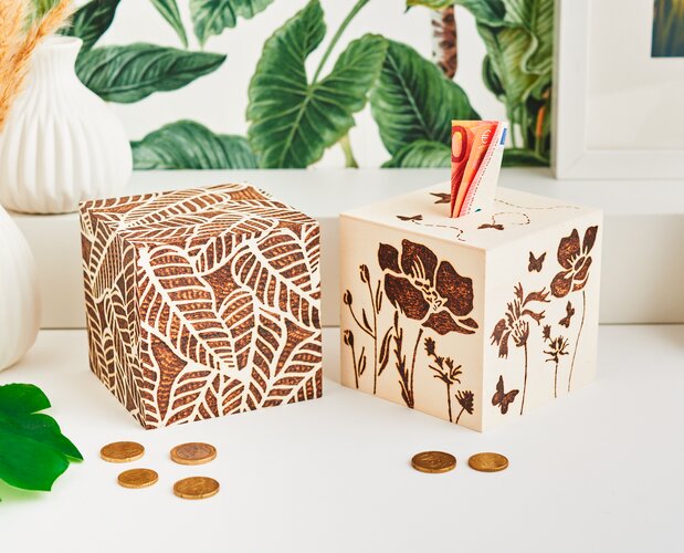 Frühstücksbrettchen, Namensschilder oder Schmuckkästchen, gravieren. Mit etwas Übung und Fingerspitzengefühl entstehen filigrane Schriftzüge und Muster, die aus einem schlichten Holzrohling ein einzigartiges Unikat machen. Die außergewöhnliche Optik wird mit keiner anderen Technik erreicht als bei der Brandmalerei; gerade aus diesem Grund ist sie so interessant und auch noch heute brandaktuell.