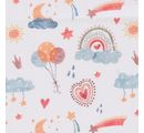 Willkommen im "Traumland" – einem Ort voller Fantasie und Kreativität! Der Baumwoll-Stoff "Traumland" entführt dich in eine zauberhafte Welt aus Luftballons, Herzen, Regenbögen und Wolken, alles in sanften Pastellfarben auf einem Hintergrund in der Farbe Ecru.