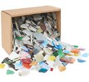 Das Bruchmosaik in der XXL Packung mit 2 kg Inhalt ist ein bunter Farbmix mit vielen verschiedenen Bruchstücken aus Glas mit abgerundeten Kanten. Die Größe der Bruchstücke beträgt ca. 8-20 mm, die Dicke ca. 2-3mm.