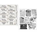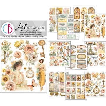 You will receive 10 sheets, measuring 12 cm, full of inspiring designs such as tags, cameras, clocks, columns and many other decorative elements that are ideal for scrapbooking, journaling or as decorations for gifts.