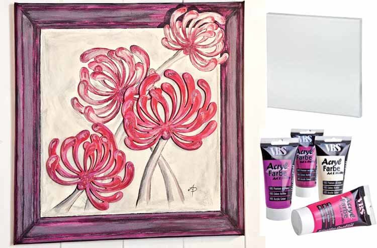 Supported by the MDF decor Chrysanthemums, this beautifully painted chrysanthemum also has a Stretched Canvas 3D effect. With our material list and the instructions for download you can do this too.