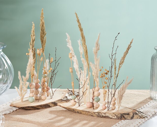 The product types such as flowers, wreaths, pendants and decorative beads define only to a very limited extent which article is suitable for which season. Rather, colour, style and motif determine the seasonal usability of a decorative object. While in spring the fresh pastel colours have gained in popularity, the common Christmas emotions are represented by the classic colours red, green, gold. Fir garlands and Christmas trees are considered standard in the cuddly season and motifs such as reindeer, stars and Father Christmas form the foundation of a Christmas homemade decoration in many households.
