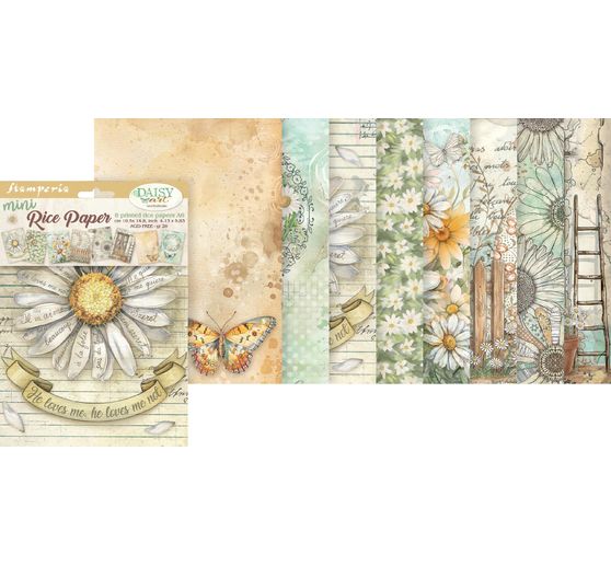 Bring your creativity to life with the Motif straw silk assortment "Daisy Art"! This enchanting set of 8 will transport you to a world full of blooming daisies and cheerful butterflies. Perfect for all your creative projects, from scrapbooking to greeting cards and gift wrapping. The motif straw floss is easy to tear, cut or use whole, ideal for napkin and decoupage techniques.
