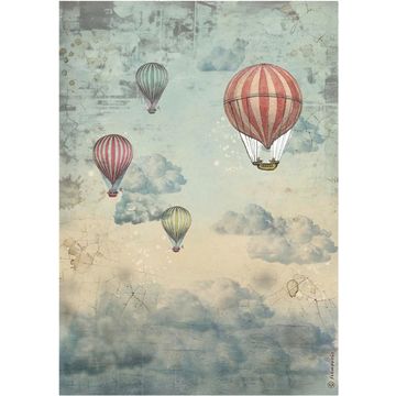 Discover the fascinating world of creativity with the Motif straw silk "Voyages Fantastiques - Sepia Background". This unique natural paper, inspired by nostalgic newspaper pages, shows a hot air balloon, a locomotive and two church steeples that take you on a journey back in time. The versatile motif straw floss is perfect for your creative projects and can be easily applied to metal, ceramics, glass, polystyrene, paper, wood, plastic, terracotta and cardboard.