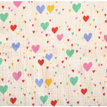 Discover the magic of the Muslin cotton fabric "Tiamo" and let your creativity run wild! With its enchanting heart motif in various sizes and colors, this fabric will transform any project into a loving work of art.