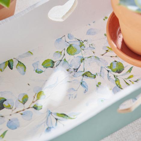 Want to add a creative touch to your home with a touch of vintage charm? Then these DIY instructions are just the thing for you! You can transform a simple tray into a real piece of jewellery using the napkin technique. Create a customised tray with an antique look that is both functional and decorative in just a few steps.