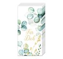 Are you looking for a special crafting material to spice up your DIY projects? Then try the Paper handkerchiefs "Für Dich"! The motif with eucalyptus and the golden lettering "For you" on a white background is not only pretty to look at, but also versatile.