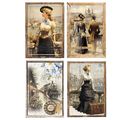 Discover the magic of times gone by with the Paper set "Eastern Journey"! Immerse yourself in a world full of nostalgic motifs: such astraveling people, steam locomotives, maps, butterflies, flowers, lettering, backgrounds with ornaments and much more. Printed on both sides, these A4 design papers in harmonious shades of beige, gray and blue invite you to unleash your creativity.