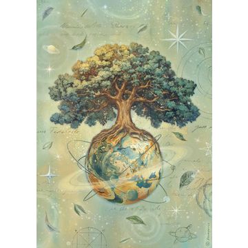 Discover the magic of a new beginning with the Stencil "A New Beginning - World Tree". This fascinating design shows a mighty tree enthroned on a globe, surrounded by twinkling stars. Perfect for anyone who wants to give free rein to their creativity.
