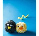 Craft materials such as children's scissors, wooden sticks, craft paper, pompoms (100% polyester), polystyrene balls, felt (100% polyester), wiggly eyes, glitter stones, yarn (70% polyester, 30% cotton) and much more