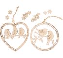 VBS Wooden decoration pendant "Wreath and heart with bird", set of 2