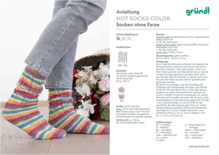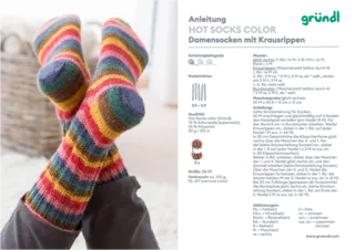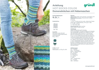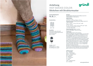 Die Gründl Hot Socks "color" Wolle ist ca. 50 g schwer und hat eine Lauflänge von ca. 210 m. Das strapazierfähige Garn besteht zu 75 % aus Schurwolle und zu 25 % aus Polyamid. Das 4-fädige Sockengarn ist für die Waschmaschine geeignet und kann idealerweise mit einer Nadelstärke von 2,5 – 3 verstrickt werden.