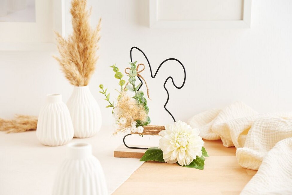 Hasen-Aufsteller mit Blumenarrangement