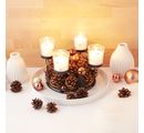 Du wirst die harmonische Kombination aus Metall, Holz und Klarglas lieben, die deinem Raum eine warme und einladende Atmosphäre verleiht. Der Kranz hat einen Durchmesser von 17 cm und eine Höhe von 9,5 cm, perfekt, um auf deinem Tisch oder Regal zu glänzen. Die vier Gläser sind ideal für Teelichtkerzen und sorgen mit einer Höhe von 6 cm und einem Durchmesser von 4,8 cm für ein stimmungsvolles Lichtspiel.