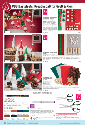 DekobeispielVBS Bastelset \nachtskinder\Bastelset f%u00fcr 10 Anh%u00e4nger. Inhalt: 10 Wollm%u00fctzen (4x Rot, 3x Gr%u00fcn, 3x Wei%u00df), 10 Holzperlen %u00d8 ca. 2,3 cm, je 1 Filzplatte in der Farbe Gr%u00fcn, Rot und Wei%u00df, 10 Gl%u00f6ckchen %u00d8 ca. 3 cm (5x Rot, 5x Gold), ca. 2 m Garn. Inkl. Anleitung. Zus%u00e4tzlich ben%u00f6tigst du eine Schere, Hei%u00dfkleber, einen Sublimatstift,%u00a0einen Fineliner und eine Nadel. 41282 419,95VBS Bastelset \5 St%u00fcckBastelset f%u00fcr 5 Figuren-Wichtel. Inhalt: 5 VBS Figurenkegel ca. 34 x 80 mm, 1x VBS Bastelfi lz ca. 20 x 30 cm in der Farbe Grau, Hellbraun, Rot, Dunkelgr%u00fcn und 2 in Wei%u00df. 20 VBS Pompons %u00d8 15 mm in Wei%u00df und Rosa. Inkl. Anleitung. Zus%u00e4tzlich ben%u00f6tigst du eine Schere, Hei%u00dfkleber, einen Sublimatstift oder einen Fineliner.41282 427,95VBS Bastelset \nenzapfen-Wichtel\10 St%u00fcckBastelset f%u00fcr 10 Wichtel, H ca. 12 cm.Inhalt: 10 Holzkugeln, 250 g VBS Tannenzapfen, 10 VBS Birkenscheiben, 10 Schellen, VBS Bastelfi lz in Wei%u00df, Gr%u00fcn und Rot. Inkl. Anleitung. Zus%u00e4tzlich ben%u00f6tigst du Bastelkleber und einen Stift.41129 1911,99POSCA Marker PC-1MCHochpigmentiert, permanent, abwischbar auf Glas, nicht durchschreibend auf Papier. Schnelltrocknend. Mit austauschbarer Rundspitze, Strichbreite ca. 0,7 mm.ab 1 Stk.Je Farbe4,19ab 5 Stk.Je Farbe3,85BESTSELLERKREUL Sublimatstift \Selbstl%u00f6schender, violetter Stift f%u00fcr Markierungen. Ideal zum Vorzeichnen auf Stoffen sowie Karton und Keilrahmen. Farbe verschwindet vollst%u00e4ndig durch Feuchtigkeit, Sonne oder innerhalb von 3-4 Tagen. Strichst%u00e4rke ca. 1-2 mm.41347 5564,99Gefahr H315, H317, H318, H351, H371, H373yideal f%u00fcr Papier, Filz, Moosgummi und PappeVBS Schere \L%u00e4nge von 20,5 cm und 16 cm. Aus Edelstahl, Kunststoff.41219 044,49Nur995Nur7952er-Setnur4492 |Alle Preise in %u20ac inkl. gesetzl. MwSt.Deutschland: 04231 668 11 (Mo.-Fr. 9-17 Uhr)%u00d6sterreich: 01 662 20 20 (Mo.-Fr. 9-17 Uhr)**service@vbs-hobby.comservice@vbs-hobby.at**Es entstehen Ihnen normale Verbindungskosten nach Wien. Zus%u00e4tzlich ben%u00f6tigst du DekobeispielDekobeispielAnleitung1989Wei%u00dfRotBlauDunkelgr%u00fcn41567 725 0841567 725 0241567 725 0441567 725 01BraunSchwarzSilberGold41567 725 0941567 725 0741567 725 1141567 725 10 VBS Bastelsets: Kreativspa%u00df f%u00fcr Gro%u00df & Klein! Anleitung3460Anleitung3459