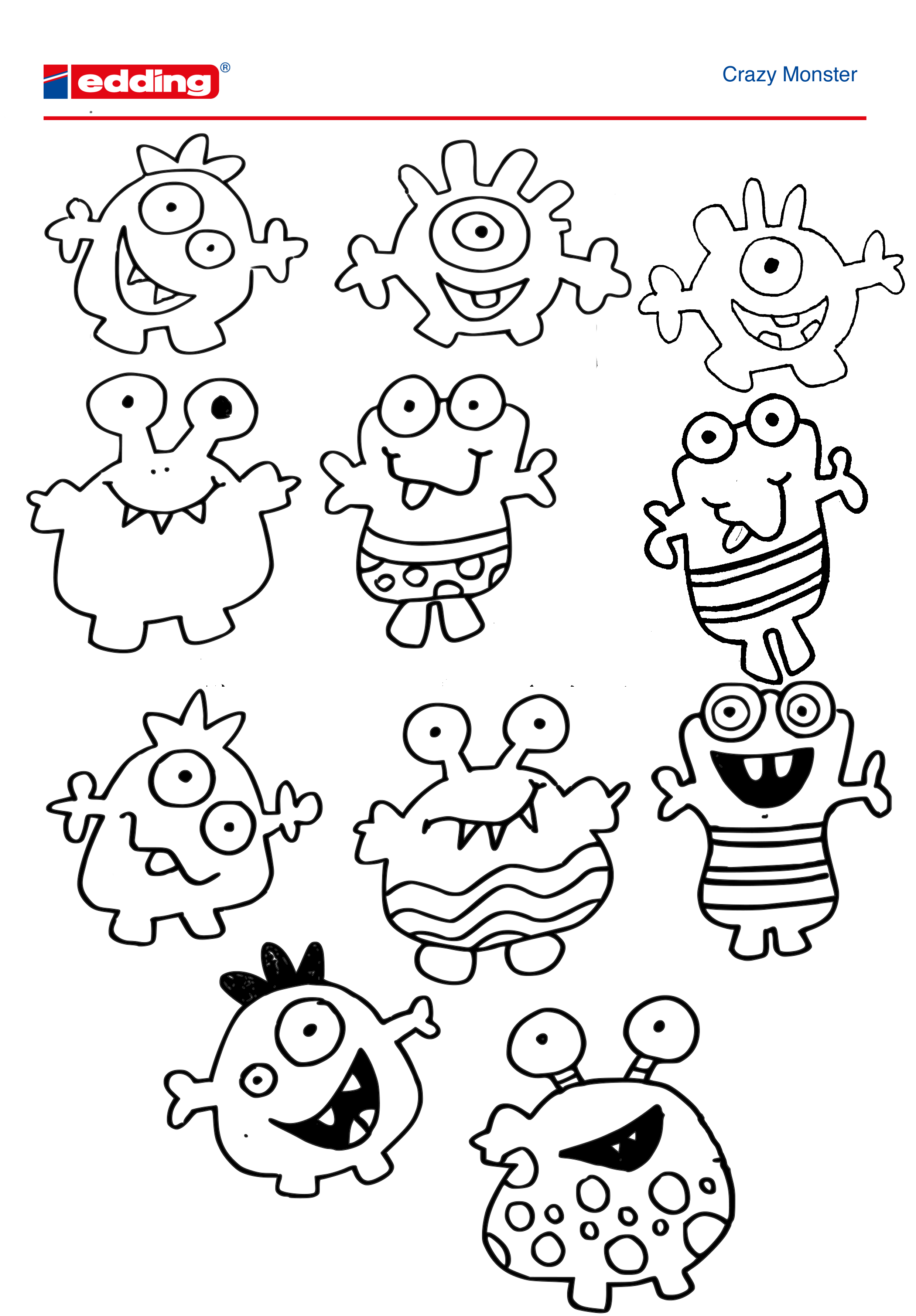 Drucken Sie als erstes die Vorlage mit den kleinen Monstern auf weißem Papier aus.