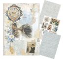 Entdecke die kreative Welt des Motiv-Strohseiden Sortiments "Eastern Journey". Diese exquisite Kollektion entführt dich auf eine visuelle Reise durch faszinierende Motive wie Dampflokomotiven, Uhren, Blumen und Ornamente, die in bezaubernden Beige-, Grau- und Blautönen gehalten sind.