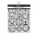 Entdecke die zeitlose Eleganz der Schablone "Gardens of Time - Clocks". Diese kunstvolle Schablone mit Uhrmotiven in unterschiedlichen Größen inspiriert dich zu kreativen Meisterwerken. Egal ob du Geschenkverpackungen, Möbel oder Leinwände verschönern möchtest, dieses vielseitige Werkzeug ist dein perfekter Begleiter.
