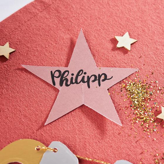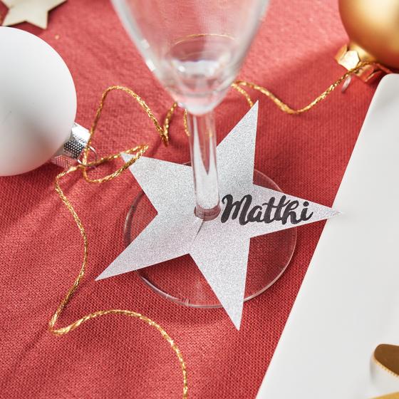 Verwende einen Permanentmarker, um die ausgeschnittenen Sterne mit Namen oder Neujahrswünschen zu personalisieren. Dies ermöglicht jedem Gast, sein persönliches Glas sofort zu erkennen.