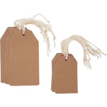 Die Anhänger können Sie für Geschenke oder als Preisschild für Waren benutzen. Die Gestaltungsmöglichkeiten sind aufgrund der neutralen Oberfläche vielseitig.