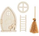 Das Set besteht aus einer charmanten Holztür mit Fliegenpilzmotiven, einem runden Fensterrahmen, einer Holzleiter und einem Besen – perfekt, um bezaubernde Wichteltürszenerien, Elfenwelten oder detailreiche Miniaturlandschaften zu gestalten.